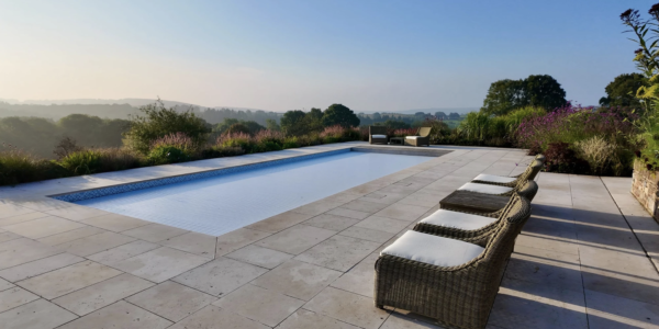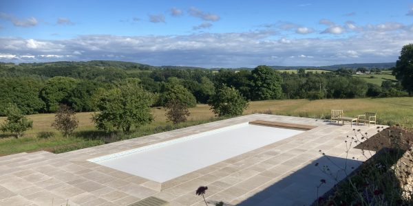 The pared-back design of this hillside swimming pool compliments the breath-taking views of the Monmouthshire countryside, whilst fulfilling the brief of being classic and timeless.